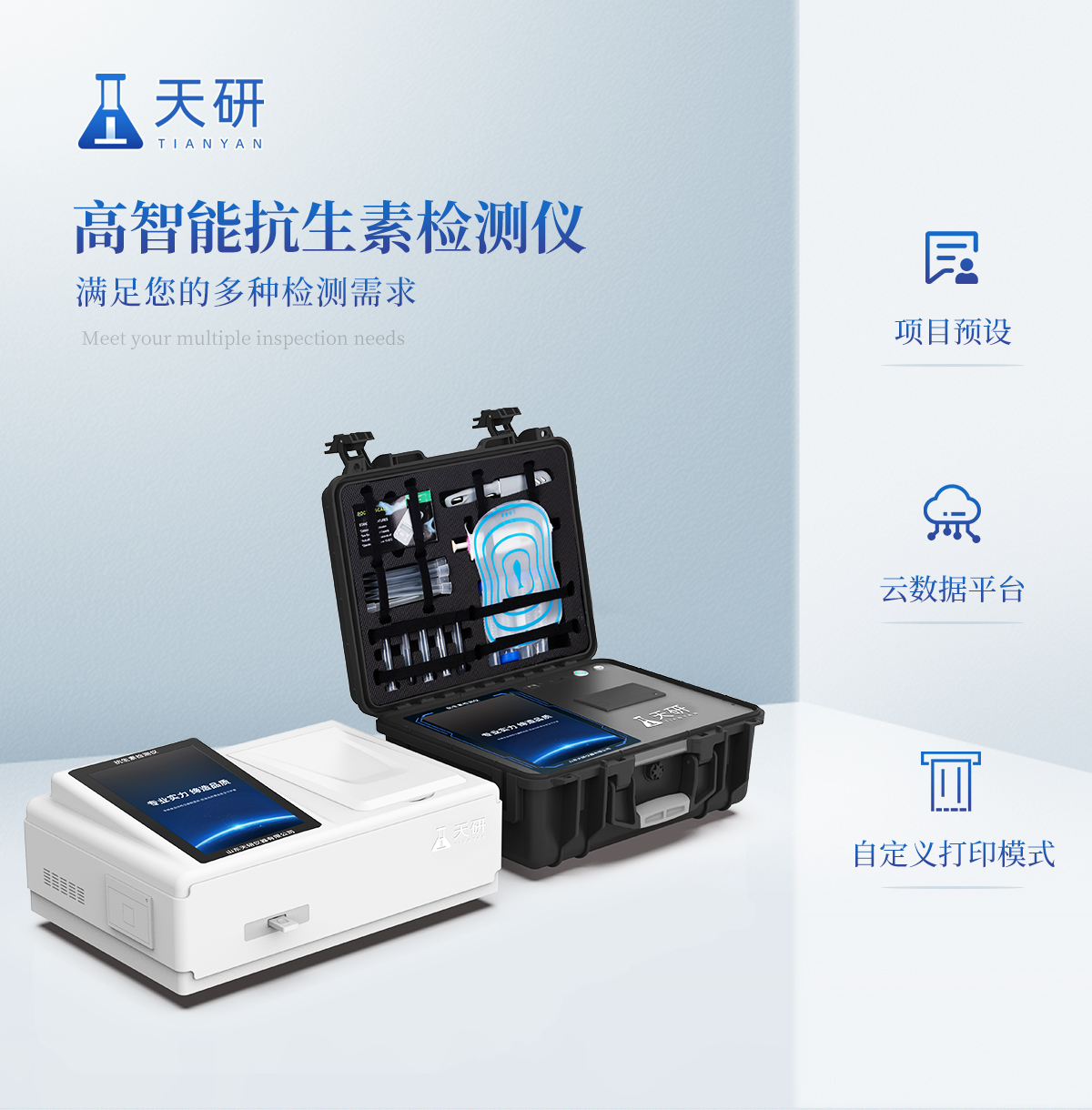 產(chǎn)品介紹: 山東天研儀器有限公司生產(chǎn)的箱式抗生素檢測儀為集成化食品安全快速檢測分析設(shè)備,采用臺式一體化設(shè)計,可快速檢測200多種食品安全項目,包含非食用化學(xué)物質(zhì)、濫用食品添加劑、農(nóng)藥殘留、獸藥殘留、重金屬、病害肉、營養(yǎng)強化劑、抗生素類殘留、激素類殘留、真菌毒素類殘留、化學(xué)類殘留等項目的定性