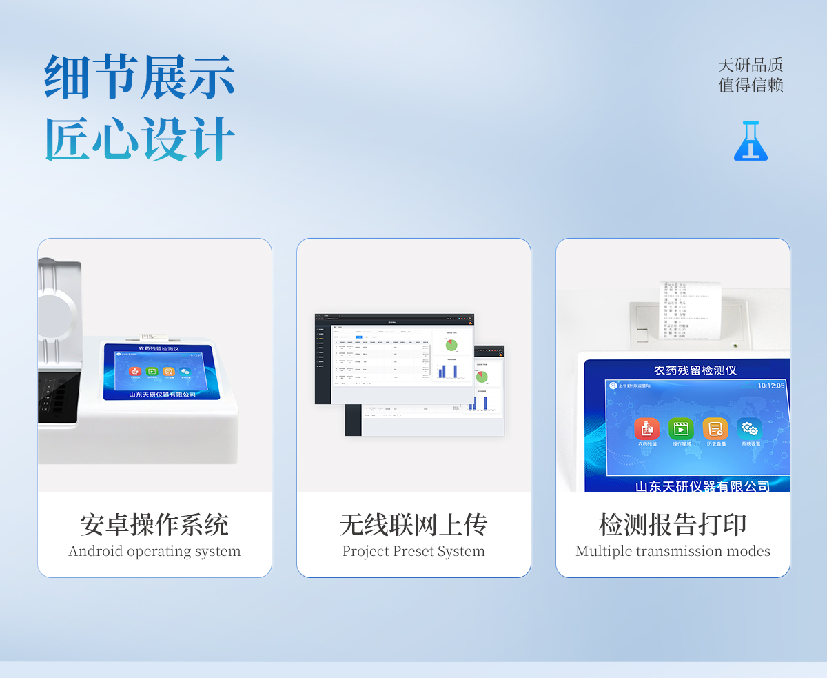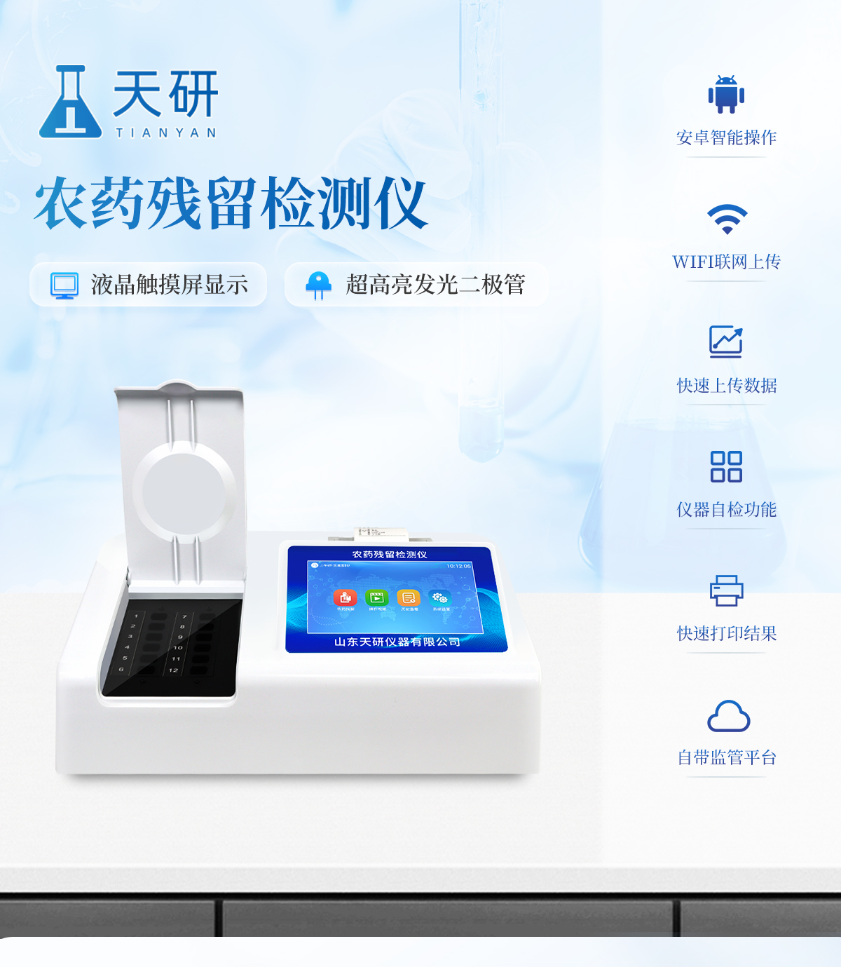 檢測(cè)標(biāo)準(zhǔn):依據(jù)國(guó)家標(biāo)準(zhǔn)方法(GB/T5009.199-2003)以及世界衛(wèi)生組織WHO、世界糧農(nóng)組織FAO殘留農(nóng)藥檢測(cè)標(biāo)準(zhǔn)、世界環(huán)境保護(hù)局EPA參照攝入量等要求來(lái)設(shè)計(jì)。采用酶抑制率比色法對(duì)水果、蔬菜等農(nóng)林產(chǎn)品中有機(jī)磷和氨基甲酸酯類農(nóng)藥含量進(jìn)行快速準(zhǔn)確的檢測(cè),乙酰膽堿酯酶和丁酰膽堿酯酶試劑均可以使用,符合國(guó)家標(biāo)準(zhǔn)和農(nóng)業(yè)部標(biāo)準(zhǔn)的要求。