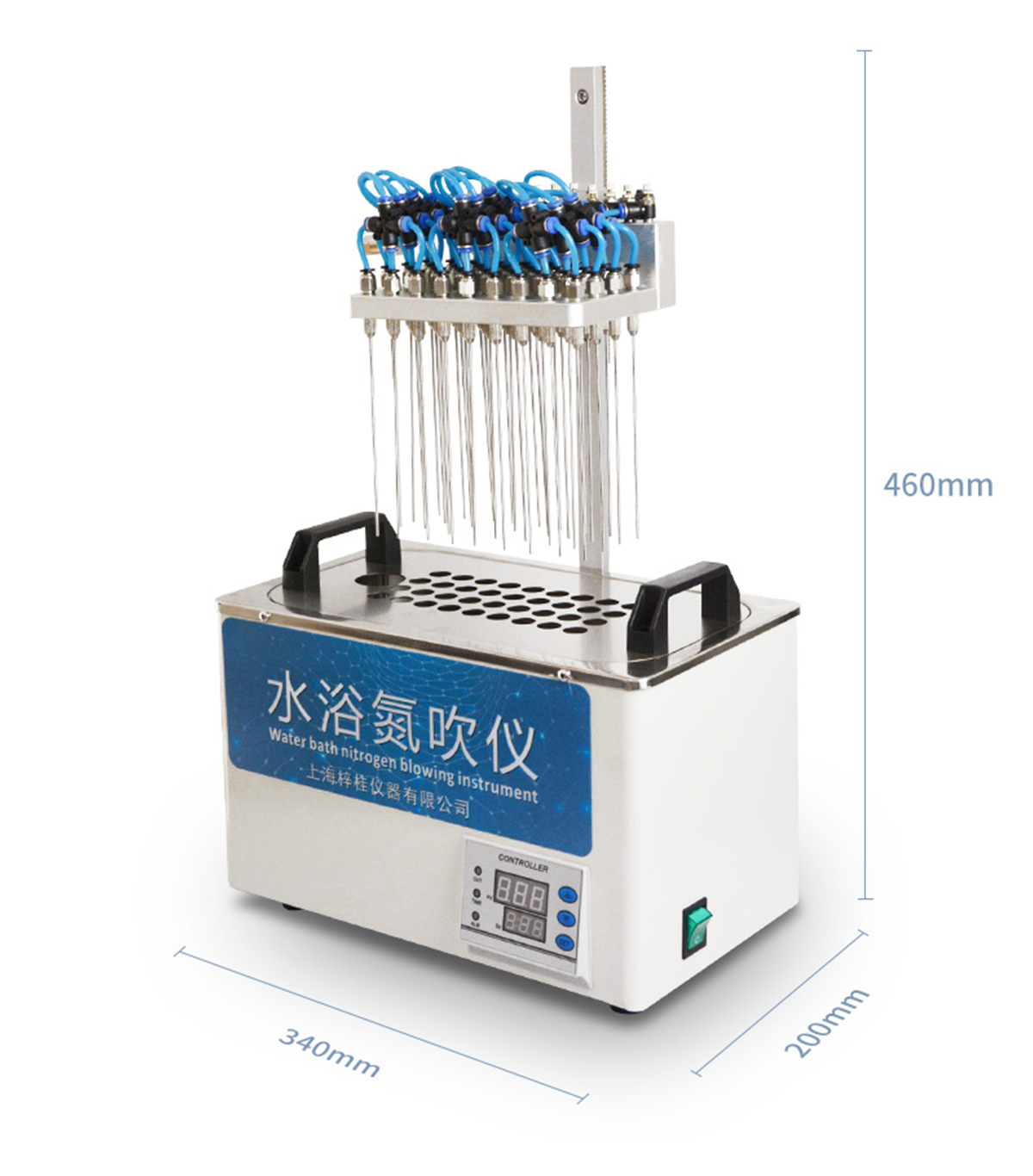 | 分配室上各氣針通道可組合使用或單獨(dú)使用,每一路氣針均可單獨(dú)開關(guān)。分配室的高度可視需要調(diào)節(jié)。 | 每一路氣體流量可單獨(dú)進(jìn)行調(diào)節(jié),克服了不可調(diào)氮吹儀各氣路氣流量大小不一的弱點(diǎn)。 | 數(shù)字溫控器,雙數(shù)字顯示. | 可能與溶劑接觸的部件均采用不銹鋼材料、合金鋁并表面進(jìn)行塑料噴涂,使用壽命長且清潔方便。 | 整機(jī)可放入通風(fēng)櫥中使用。 | 一般標(biāo)配的加熱塊規(guī)格為孔徑∮16mm。 |