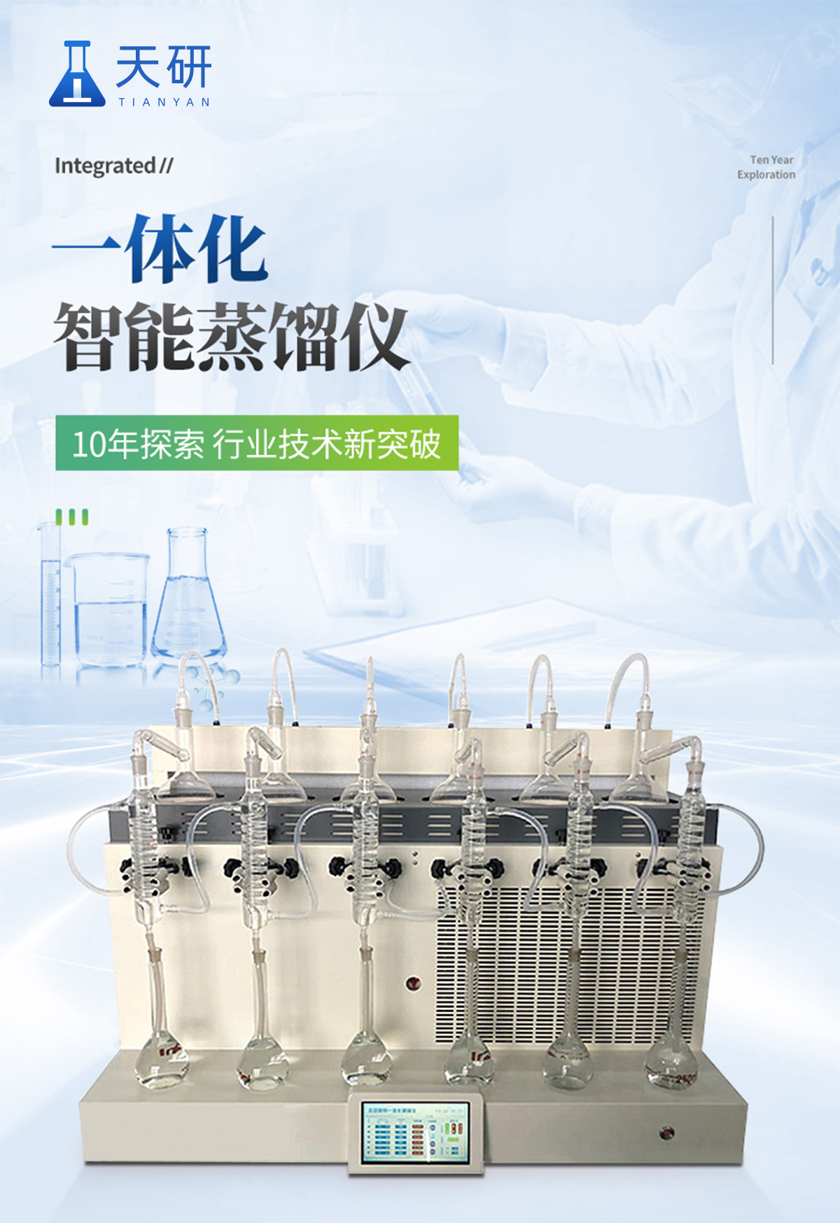 TY-ZL6智能一體化蒸餾儀是根據(jù)實(shí)驗(yàn)室蒸餾預(yù)處理操作規(guī)程,集恒溫加熱、蒸餾終點(diǎn)自動(dòng)控制、冷卻水循環(huán)于一體的新型智能蒸餾處理裝置。