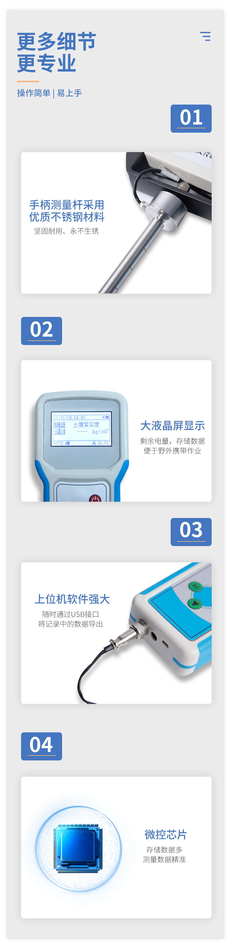 土壤緊實(shí)度又叫土壤硬度或土壤堅(jiān)實(shí)度或土壤穿透阻力。一般用金屬柱塞或探針壓入土壤時(shí)的阻力表示(單位為Pa)。土壤緊實(shí)度是指土壤抵抗外力的壓實(shí)和破碎的能力,是土壤性質(zhì)的其中一個(gè)方面。另外,土壤物理性包括土壤質(zhì)地、結(jié)構(gòu)、孔隙性等,涉及到土壤的堅(jiān)實(shí)度、塑性、通透性、排水、蓄水能力、根系穿透的難易等。