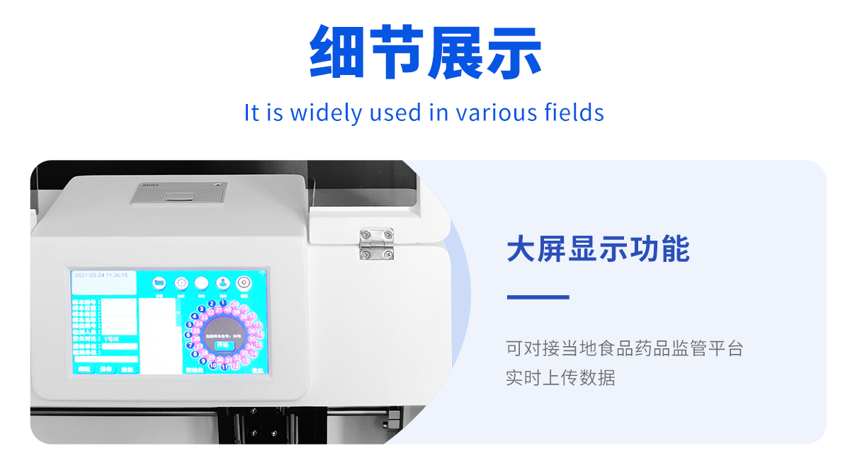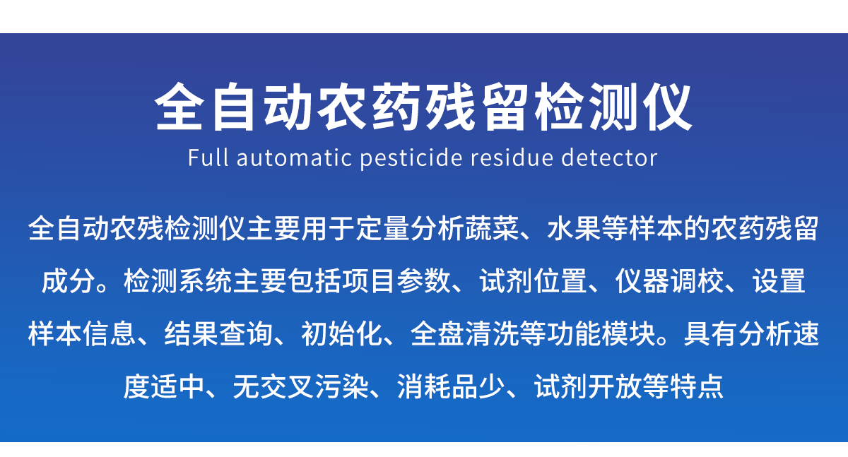 廣泛應用于主要用于蔬菜、水果、茶葉、糧食、農副產品等食品中有機磷和氨基甲酸酯類農藥殘留的快速檢測;此外還可用于果蔬茶生產基地和農貿批發(fā)銷售市場現(xiàn)場檢測,餐館、學校、食堂、家庭果蔬加工前的安全速測等,為廣大人民的生活安全提供保障。