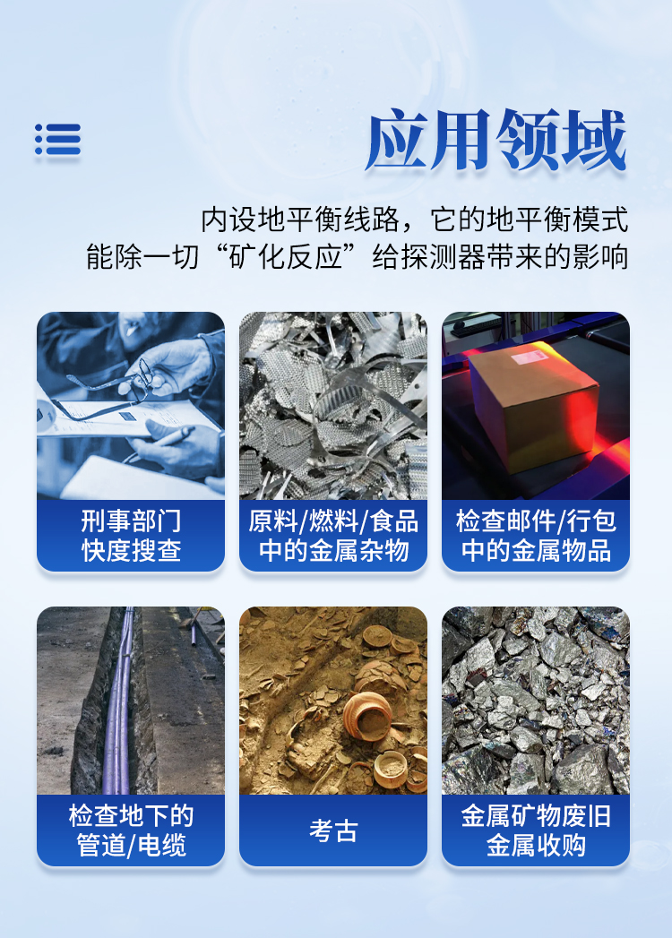 設(shè)備介紹: 在使用舊式金屬探測(cè)器時(shí),最令人討厭的問(wèn)題是地面的影響:隨著探測(cè)盤(pán)與地面的距離變化儀器的信號(hào)也跟著變化,若把探測(cè)盤(pán)掃過(guò)凹凸不平的地面,這個(gè)變化就更大了,操作者仿佛到處都聽(tīng)到信號(hào)聲,弄不清那里真正埋有金屬。這種現(xiàn)象叫做"礦化反應(yīng)"。造成"礦化反應(yīng)"的原因,是由于構(gòu)成土壤和各種礦物使