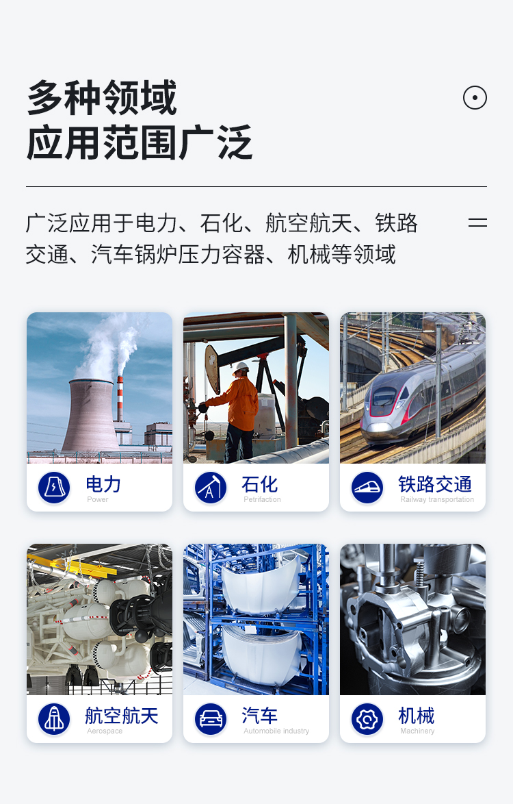 超聲波探傷儀是一種便攜式工業(yè)無損探傷儀,它能夠便攜、無損傷、準確地進行工件內部多種缺陷(裂紋、疏松、氣孔、夾雜等)的檢測、定位、評估和診斷。既可以用于實驗室,又可以用于工程現場。應用在鍋爐、壓力容器、航天、電力、石油、化工、海洋石油、管道、船舶制造、汽車、機械制造、冶金、金屬加工、鋼結構、鐵路交通、核能電力、高校等行業(yè)。