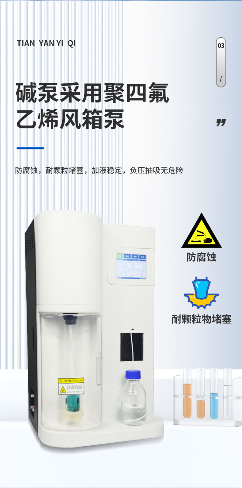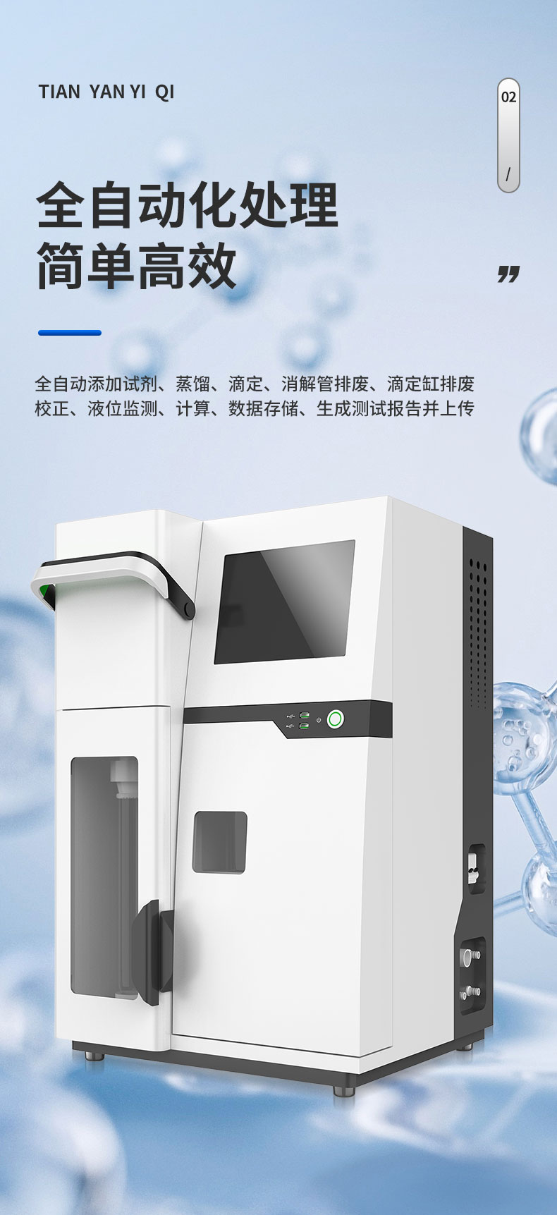 用于檢測(cè)食品、藥品、土壤、化工、農(nóng)業(yè)、林業(yè)、材料、環(huán)境監(jiān)測(cè)等領(lǐng)域氮含量或蛋白質(zhì)含量測(cè)定、陽(yáng)離子交換量測(cè)定。