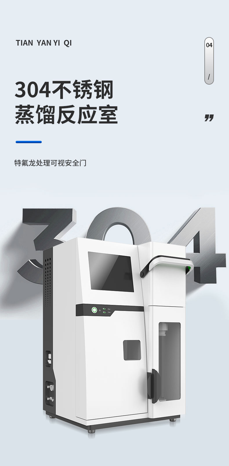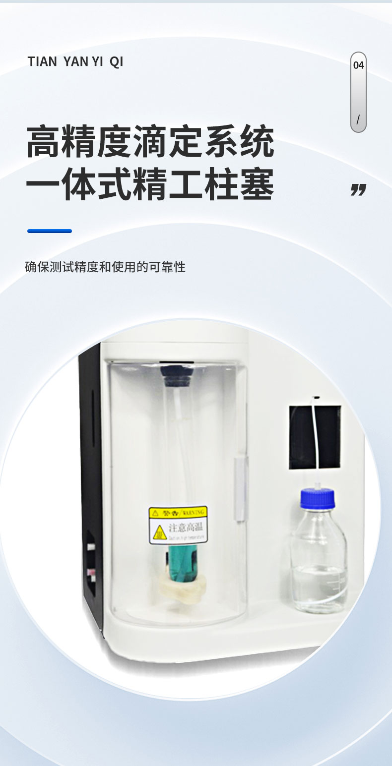 | 1. 采用國(guó)家標(biāo)準(zhǔn)的凱氏定氮方法,濃硫酸環(huán)境消解樣品、堿性環(huán)境蒸汽蒸餾、硼酸吸收、指示劑滴定終點(diǎn)顏色判斷法。并參與國(guó)家標(biāo)準(zhǔn)GB/T22923-2008、官方JJF109-2012《定氮儀校準(zhǔn)規(guī)范》的起草; | 1. ☆全自動(dòng)添加試劑、全自動(dòng)蒸餾滴定、滴定杯全自動(dòng)排廢清洗、全自動(dòng)校正、全自動(dòng)故障檢測(cè)、全自動(dòng)溶液液位監(jiān)測(cè)、全自動(dòng)計(jì)算、數(shù)據(jù)存儲(chǔ)、測(cè)試報(bào)告生成; | 2. 彩色液晶觸摸屏,蒸餾時(shí)間與試劑添加通過(guò)屏幕設(shè)定,條件可自動(dòng)保存; | 3. 滴定顏色可自動(dòng)與手動(dòng)校準(zhǔn)。滴定終點(diǎn)判定采用高精度的十六位三基色數(shù)字信號(hào)顏色傳感器采集顏色信號(hào)。 | 4. 2.0μL的高精度滴定系統(tǒng),專業(yè)的一體式精工柱塞。確保測(cè)試精度和使用的可靠性。 | 5. 彩色液晶觸摸屏,中英文操作界面可選,實(shí)時(shí)監(jiān)測(cè)和顯示實(shí)驗(yàn)過(guò)程,條件可自動(dòng)保存; | 6. 可存儲(chǔ)完整的測(cè)試數(shù)據(jù)1000組; | 7. 全自動(dòng)故障檢測(cè)和提示:安全門(mén)、消化管到位監(jiān)測(cè)和提示,試劑液位監(jiān)測(cè)和提示,蒸汽爐液位和溫度檢測(cè)和提示; | 8. 采用成熟穩(wěn)定的蒸汽發(fā)生器技術(shù),自動(dòng)預(yù)熱、補(bǔ)水,自動(dòng)控制蒸汽壓力,自動(dòng)防干燒,自動(dòng)清洗; | 9. 自動(dòng)控制蒸汽壓力在安全范圍之內(nèi),遠(yuǎn)離蒸汽過(guò)壓危險(xiǎn); | 10.雙蒸餾模式,手動(dòng)與自動(dòng)任意切換; | 11.☆堿泵采用高可靠的聚四氟乙烯風(fēng)箱泵,專用防腐蝕,耐顆粒堵塞,加液穩(wěn)定,負(fù)壓抽吸無(wú)危險(xiǎn); | 12.節(jié)水設(shè)計(jì),冷卻水流量1.5L/min, 冷卻水只在蒸餾過(guò)程開(kāi)啟,冷卻水流量實(shí)時(shí)監(jiān)控,低水壓報(bào)警顯示,停水自動(dòng)終止運(yùn)行; | 13.貼合氨逸出規(guī)律特殊設(shè)計(jì)的蒸餾系統(tǒng),確保高可靠的測(cè)試回收率; | 14.消化管周邊設(shè)施智能化設(shè)計(jì),透明亞克力保護(hù)罩,將危險(xiǎn)徹底隔離; | 15.蒸汽發(fā)生器具有壓力傳感器、溫度傳感器、溫度保護(hù)開(kāi)關(guān)、水位雙重檢測(cè)等多重保護(hù); | 16.儀器具備自檢功能、具備一鍵重置。 | 17.☆試劑桶液位監(jiān)測(cè),保證實(shí)驗(yàn)過(guò)程不出現(xiàn)缺液?jiǎn)栴}。 | 18.☆高分子材料防濺瓶設(shè)計(jì)。 |