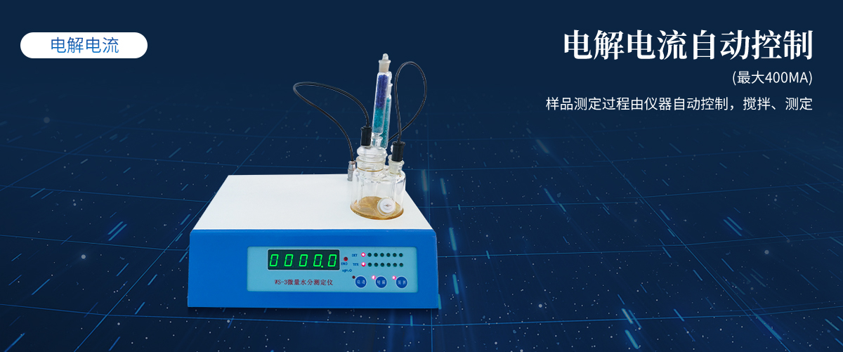 | 微量水分測定儀根據(jù)卡爾-菲休滴定原理,采用**的微機電路,測定性質(zhì)不同的液體、固體中微量水分的含量。對于不溶于試劑的固體,以及與試劑起化學(xué)反應(yīng)的或容易污染電極的物質(zhì),可配用相應(yīng)的固體、液體進樣器,進行間接測定。 | 該儀器具有測定精度高、分析速度快、使用范圍廣、穩(wěn)定可靠、操作簡單等優(yōu)點。廣泛用于電力、石油、化工、農(nóng)藥、醫(yī)藥等行業(yè)。樣品測定過程由儀器自動控制,攪拌、測定60秒左右自動完成,直接顯示測定結(jié)果;全密封滴定池瓶,避免試劑與人接觸,也避免環(huán)境濕度的影響; |