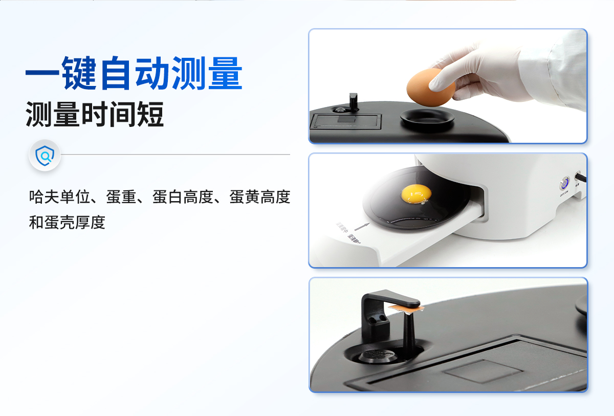 | 1. 微處理器控制,自動(dòng)測(cè)量蛋重、蛋白高度,新鮮度(哈夫單位)、蛋黃高度,蛋殼厚度。(蛋黃和蛋殼可選擇) | 2. 高精度數(shù)字傳感器,測(cè)量結(jié)果精度高,穩(wěn)定性好。 |
