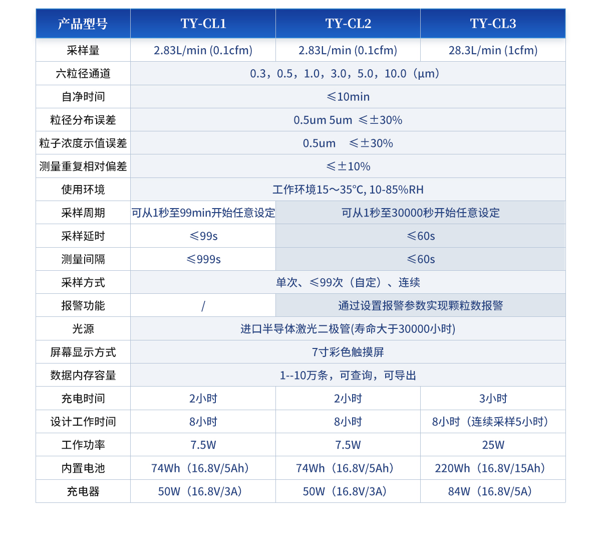 | 采樣量:2.83L/min (0.1cfm) | 六粒徑通道:0.3,0.5,1.0,3.0,5.0,10.0(μm) | 自凈時(shí)間:≤10min | 粒徑分布誤差:0.5um 5um ≤±30% | 粒子濃度示值誤差:0.5um ≤±30% | 測(cè)量重復(fù)相對(duì)偏差:≤±10% | 使用環(huán)境:工作環(huán)境15~35℃, 10-85%RH | 采樣周期:可從1秒至30000秒開始任意設(shè)定 | 采樣延時(shí):≤60s | 測(cè)量間隔:≤60s | 采樣方式:?jiǎn)未?、?9次(自定)、連續(xù) | 報(bào)警功能:通過(guò)設(shè)置報(bào)警參數(shù)實(shí)現(xiàn)顆粒數(shù)報(bào)警 | 光源:進(jìn)口半導(dǎo)體激光二極管(壽命大于30000小時(shí)) | 屏幕顯示方式:7寸彩色觸摸屏 | 數(shù)據(jù)內(nèi)存容量:1--10萬(wàn)條,可查詢,可導(dǎo)出。 | 充電時(shí)間:2小時(shí) | 設(shè)計(jì)工作時(shí)間:8小時(shí) | 平均功率:7.5W | 內(nèi)置電池:74Wh(16.8V/5Ah) | 充電器:50W(16.8V/3A) |