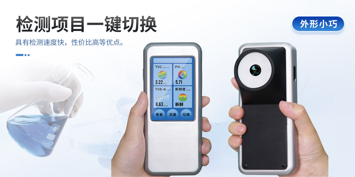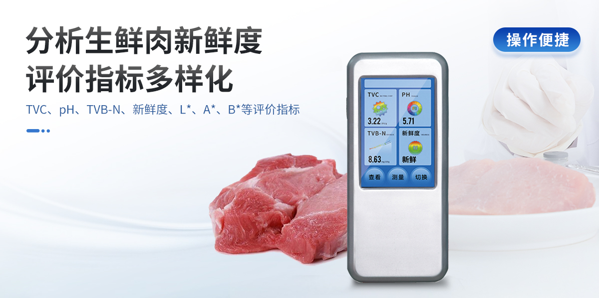 產(chǎn)品介紹: 聯(lián)合中國農(nóng)業(yè)大學彭彥昆教授團隊研發(fā)的掌上式生鮮肉新鮮度分析儀,可用于檢測生鮮肉的TVC、pH、TVB-N、新鮮度、L*、A*、B*等評價指標。Palmarter具有體積小、便 于攜帶、性價比高等特點,其應用場景包括但不限于肉儲運企業(yè)、肉品品質(zhì)監(jiān)管部門、飯店、超市、菜場、家庭等。 檢測項目: