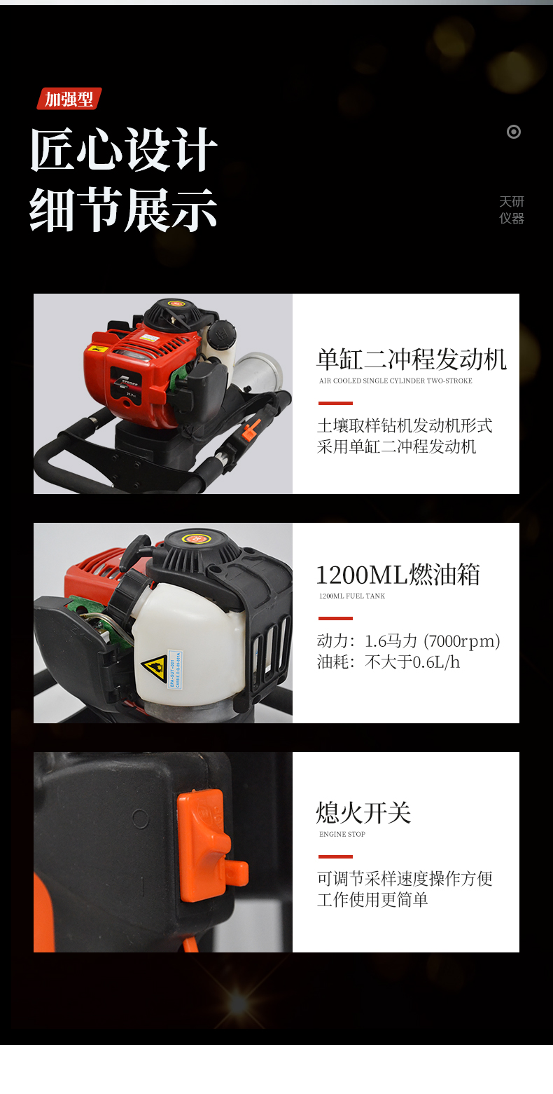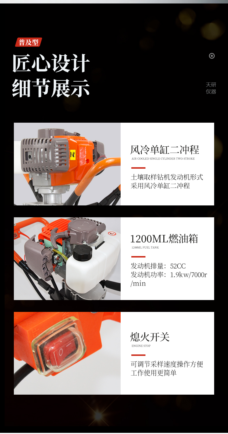動力(汽油)土壤采樣器(汽油動力土鉆)土壤采樣器是本廠汲取廣大客戶意見、經(jīng)多方用戶需求和市場調(diào)研,開發(fā)出的一款動力(汽油)土壤采樣器。儀器采用汽油機(jī)驅(qū)動、以大幅減免土壤取樣人員的勞動力和快速、取樣簡便而著稱。