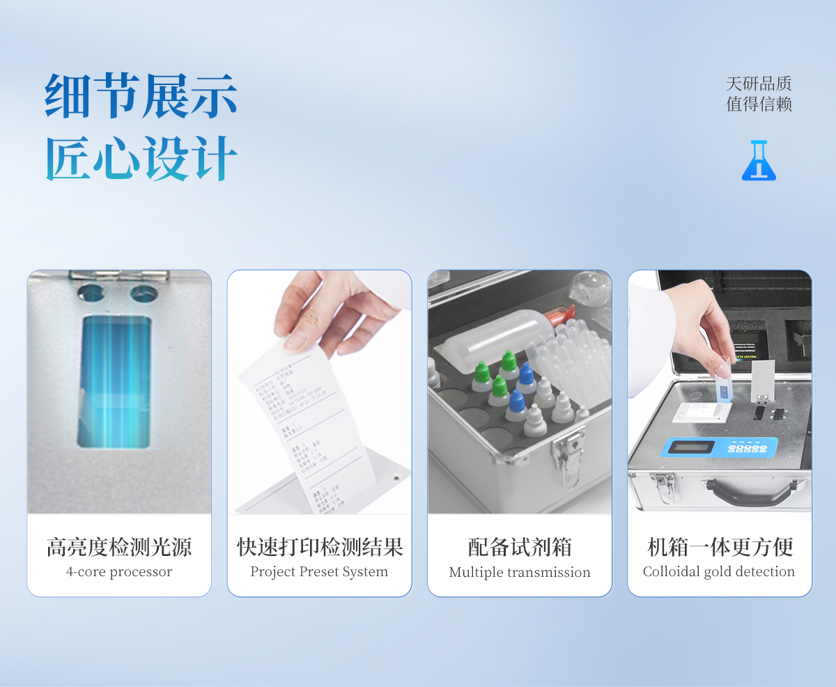 | 可檢測化肥、有機肥(含葉面肥、水溶肥、噴施肥等)、植株中的有機質、腐殖酸等。 | 安卓智能操作系統(tǒng),采用更加**和人性化操作,儀器標配wifi聯(lián)網(wǎng)上傳、4G聯(lián)網(wǎng)傳輸、GPRS無線遠傳,快速上傳數(shù)據(jù)。 | 采用精密旋轉比色池設計,光源一致性更加**保證檢測精度。一次性可快速檢測12個樣品,極大提升檢測效率,降低檢測成本。 | 儀器配有數(shù)據(jù)接收平臺,無需數(shù)據(jù)線,數(shù)據(jù)可直接局域網(wǎng)和互聯(lián)網(wǎng)無線上傳,方便進行數(shù)據(jù)管理和數(shù)據(jù)長期分析。 | 儀器內置新一代高速熱敏打印機,檢測完成可自動打印檢測報告和二維碼。 | 高靈敏7寸電容觸摸屏,高清晰高交互顯示,大程度降低傳統(tǒng)儀器的繁瑣操作和失誤。 | 每個通道均配置四波長冷光源,所有光源實現(xiàn)恒流穩(wěn)壓,保證波長穩(wěn)定。 硅半導體作為信號接收系統(tǒng),壽命長達10萬小時級別。重現(xiàn)性好,準確度高。 |