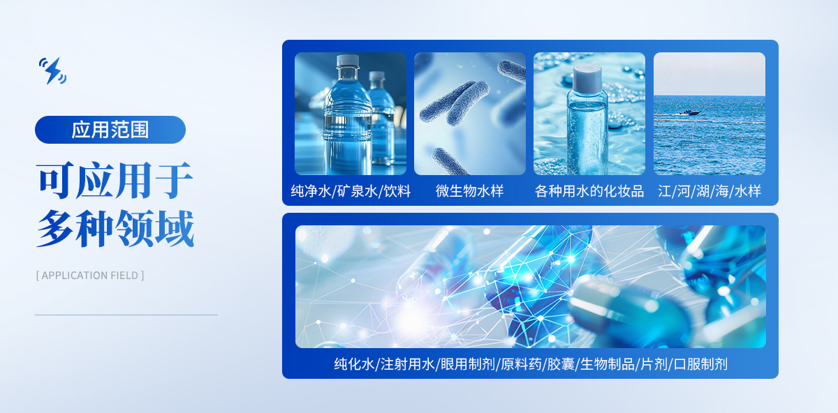 | 1.制藥:純化水、注射用水、原料藥及口服液、片劑、膠囊、生物制品及制劑的微生物限度檢查。 | 2.疾控:空調(diào)冷凝水、生活飲用水等水質(zhì)的細(xì)菌總數(shù)檢查,致病菌檢測(cè)。 | 3.食品:飲料、礦泉水、純凈水的菌落總數(shù)檢查。 | 4.化工:各種需測(cè)試微生物的水樣檢測(cè)。 |