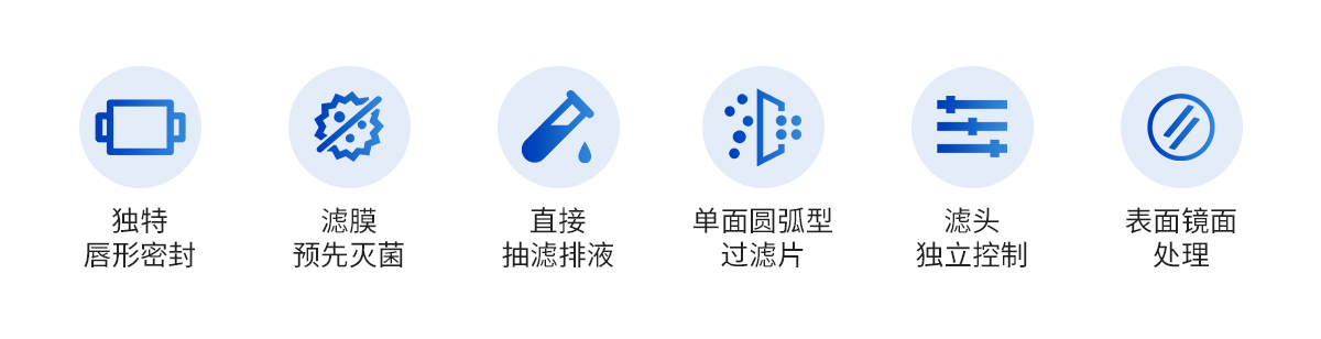 | 1.過濾杯采用獨特的唇形密封設(shè)計,不使用夾鉗和 O 型圈,確保無泄 漏操作和均勻的微生物回收率 2.濾膜預先滅菌,即拆即用,可將主要污染物源降到**,提高檢測可靠性 3..直接抽濾排液,抽濾瓶,安裝使用方便 4.**真空泵,效率更高 5.小巧的機身,減少對操作臺面積的占用 6.防水開關(guān) 簡潔方便 7.六聯(lián)過濾頭設(shè)計,可同時抽濾,提高工作效率,每個濾頭也可獨立控制,方便操作人員靈活使用 8.過濾頭可快速拆裝,能單獨濕熱滅菌 9.過濾頭可以火焰快速滅菌,方便連續(xù)實驗操作 10.采用單面圓弧型過濾片,方便更換 11.儀器表面經(jīng)鏡面處理,便于清潔和消毒 12.濾杯采用可重復使用材料設(shè)計,經(jīng)久耐用,節(jié)省成本,操作方便 |