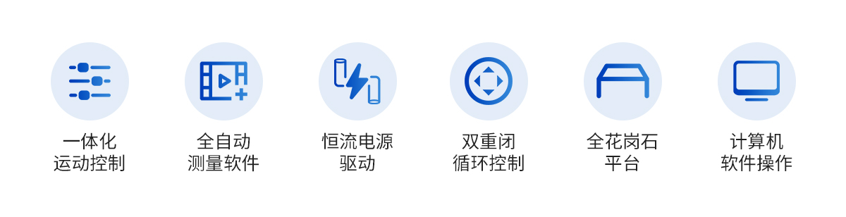 | 儀器基座 | CCD | 鏡頭 | 光柵尺 | 導(dǎo)軌 | 傳動 | 電機(jī) | 運(yùn)動控制 | 程控光源 | 操縱桿 | 全自動測量軟件 | 加密狗 | 光學(xué)校正片 | 電壓 | 計(jì)算機(jī) |