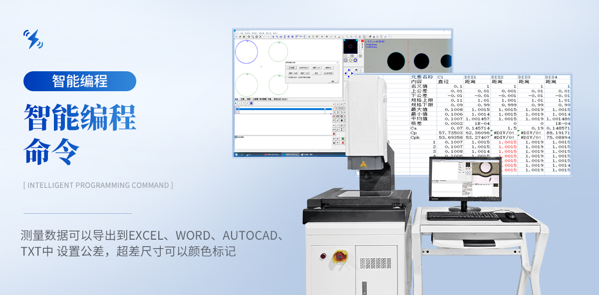 測(cè)量數(shù)據(jù)可以導(dǎo)出到EXCEL、Word、AutoCAD、TXT中。設(shè)置公差,超差尺寸可以顏色標(biāo)記,也可以輸出語音報(bào)警。