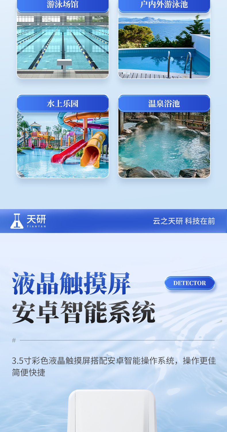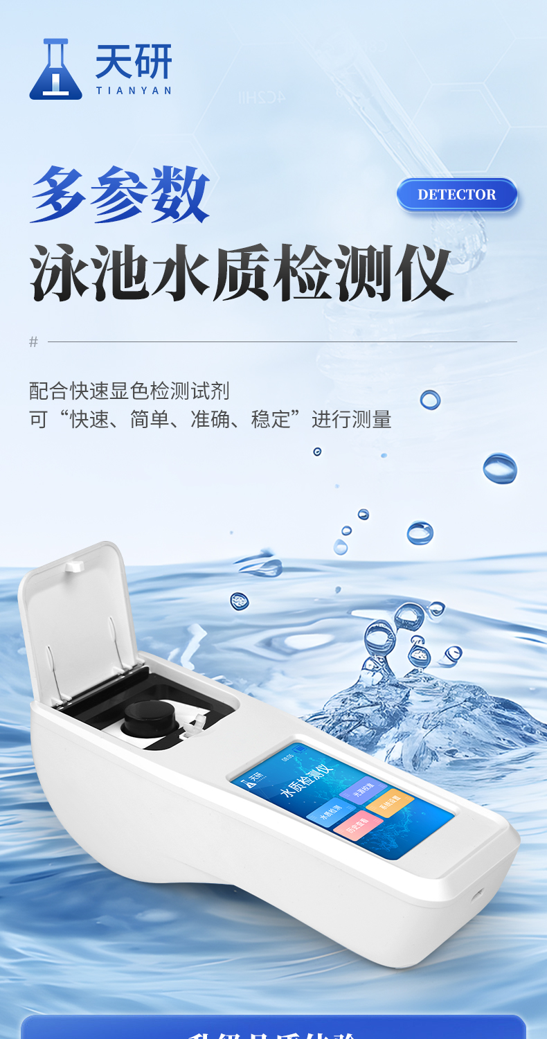 泳池水質(zhì)檢測儀是一款適用于游泳場館、戶內(nèi)外游泳池、水上樂園、溫泉浴池等領(lǐng)域的檢測儀,配合快速顯色檢測試劑,可“快速、簡單、準(zhǔn)確、穩(wěn)定”進(jìn)行測量,擁有精美的外觀造型,簡單的操作界面,準(zhǔn)確的檢測系統(tǒng),幫助用戶獲得精細(xì)的數(shù)據(jù),可更準(zhǔn)確、有效的分析水體狀況。