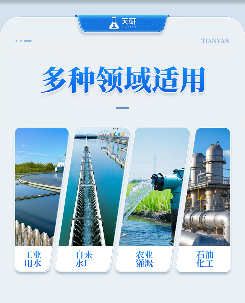 可以廣泛應(yīng)用于鍋爐水、工業(yè)用水、自來水廠、生活飲用水、石油化工、農(nóng)業(yè)灌溉、飲料食品制造業(yè)等行業(yè)。