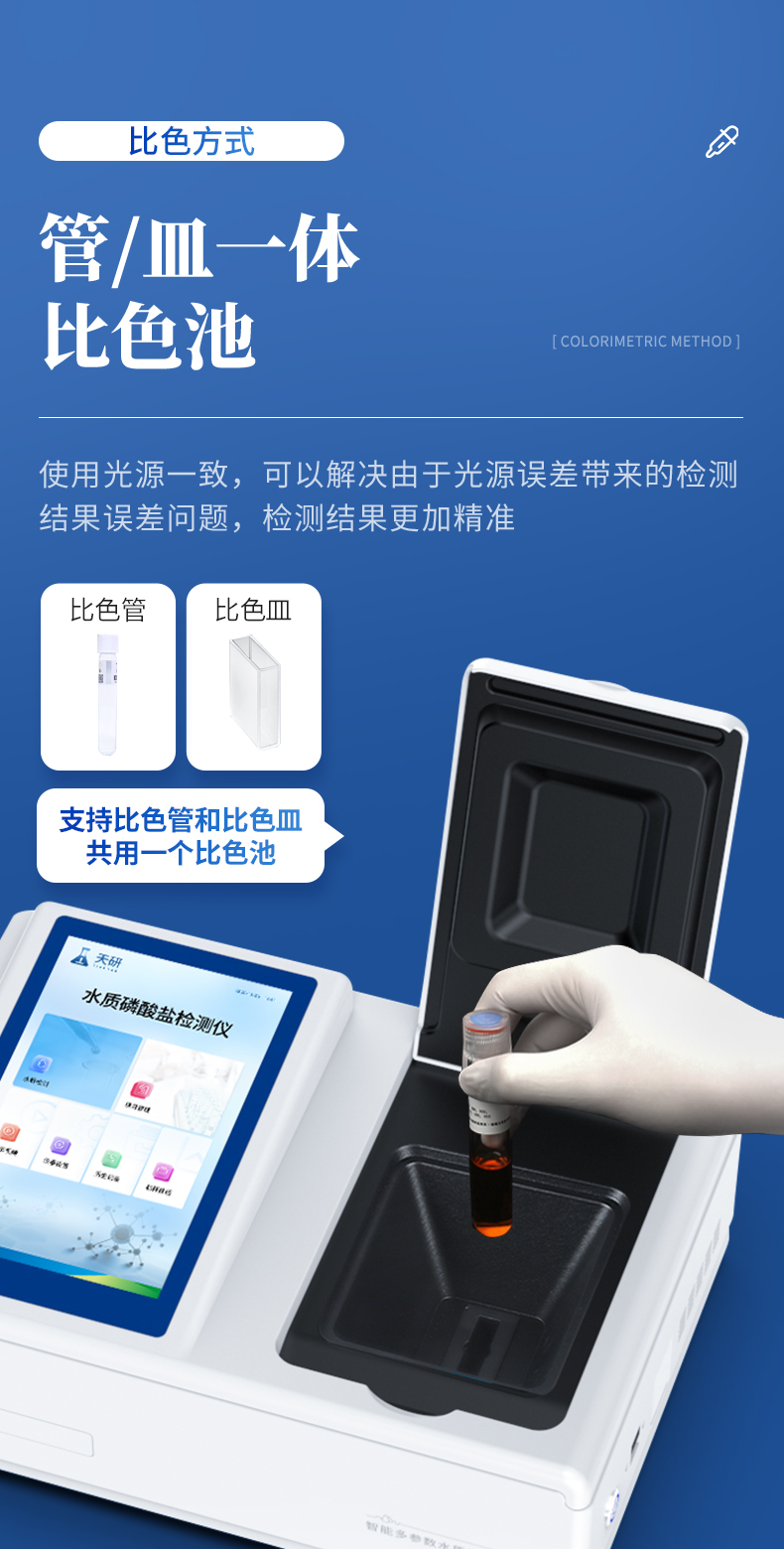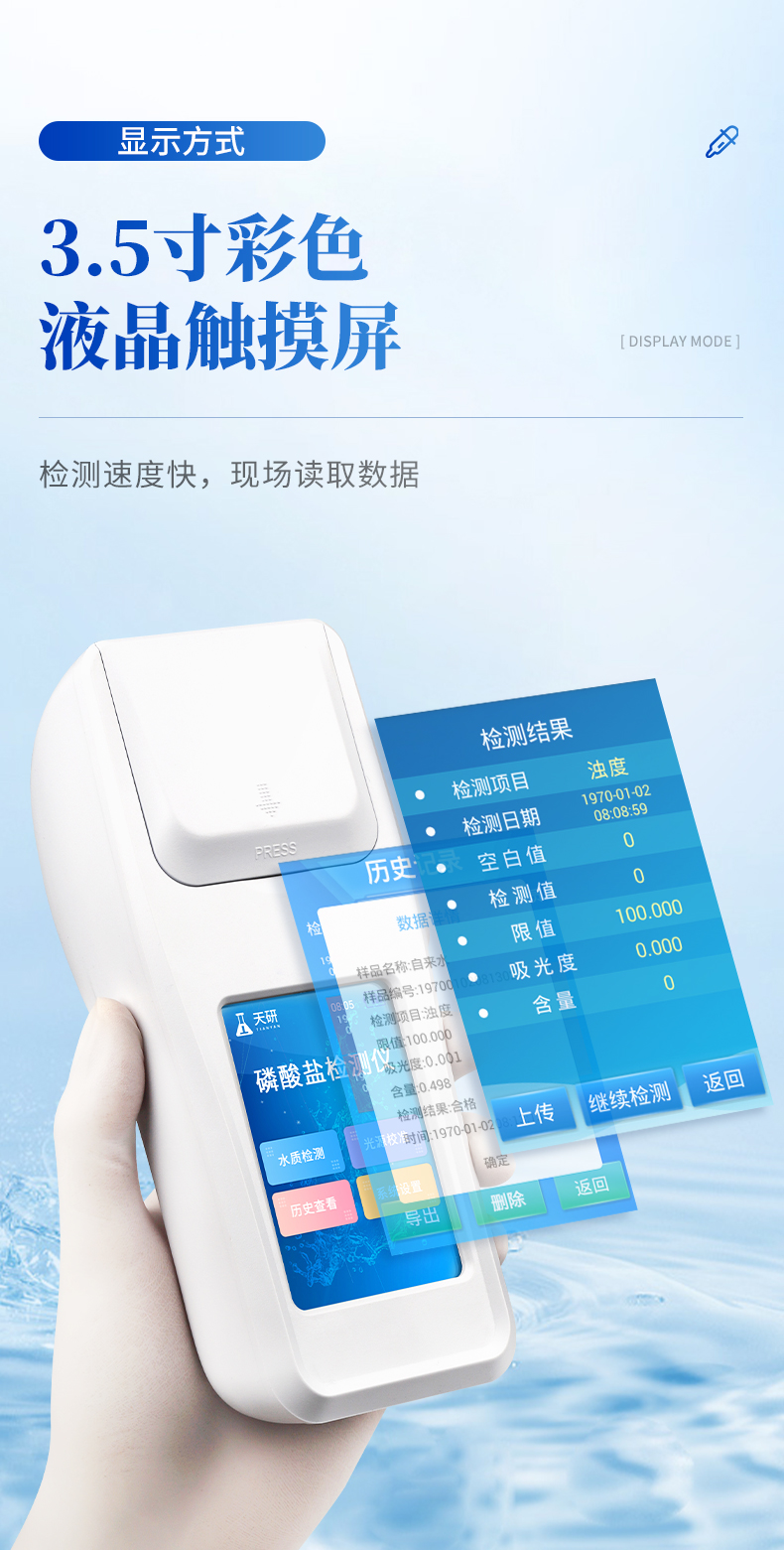 水質(zhì)磷酸鹽檢測儀是一款適用于工業(yè)污水、水產(chǎn)養(yǎng)殖、河流監(jiān)測、游泳場館等領(lǐng)域的檢測儀,配合快速顯色檢測試劑,可“快速、簡單、準(zhǔn)確、穩(wěn)定”進(jìn)行測量,擁有精美的外觀造型,簡單的操作界面,準(zhǔn)確的檢測系統(tǒng),幫助用戶獲得精細(xì)的數(shù)據(jù),可更準(zhǔn)確、有效的分析水體狀況,提前預(yù)防養(yǎng)殖風(fēng)險,及時避免損失。