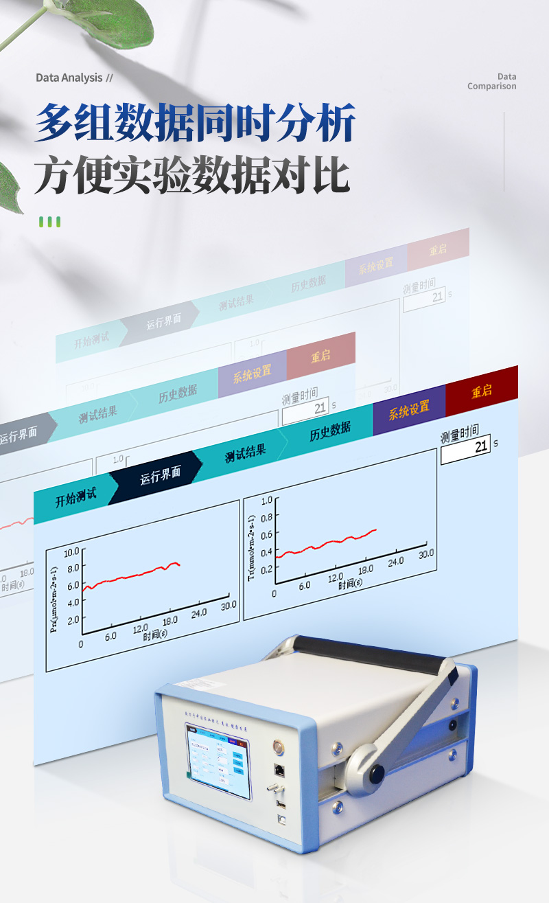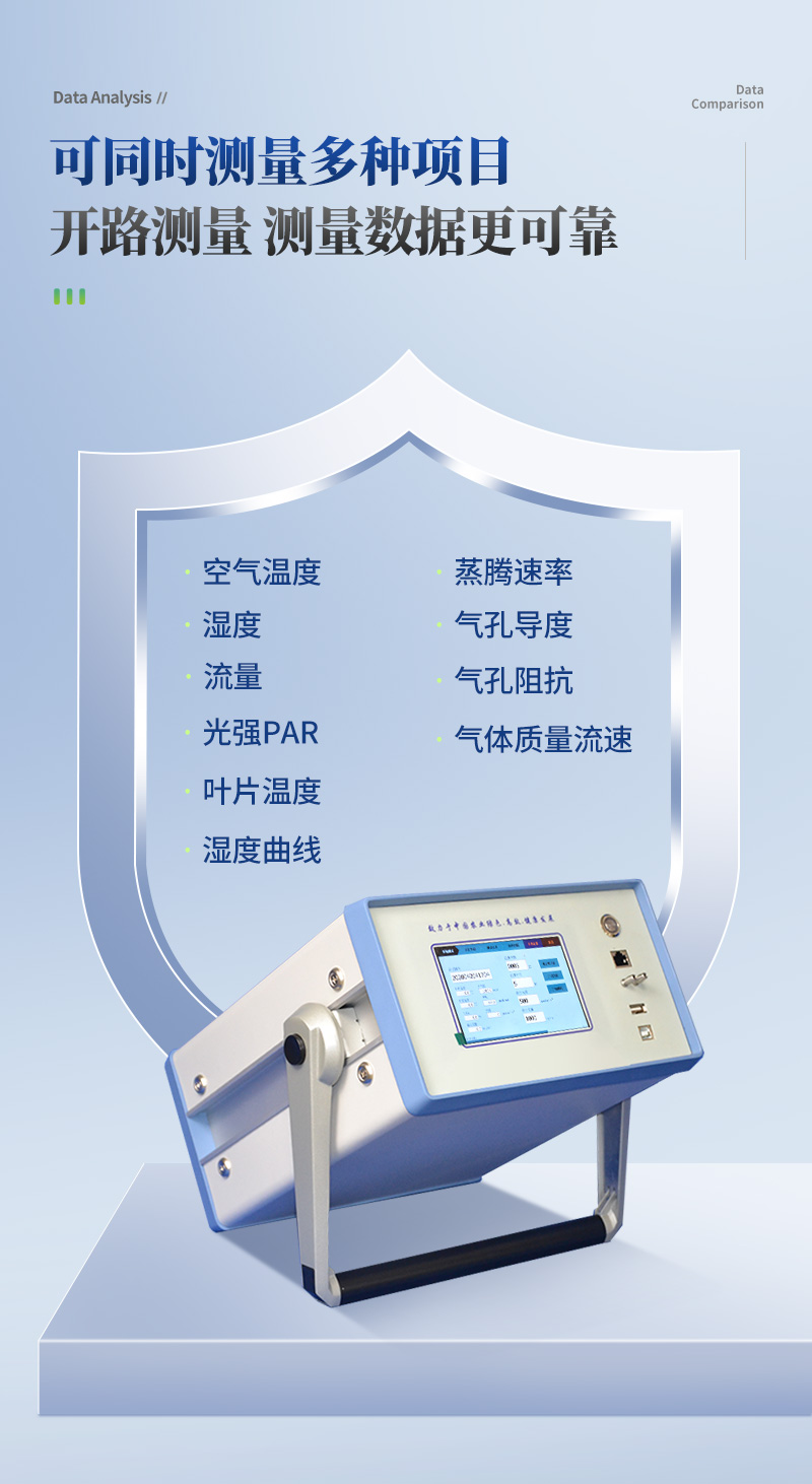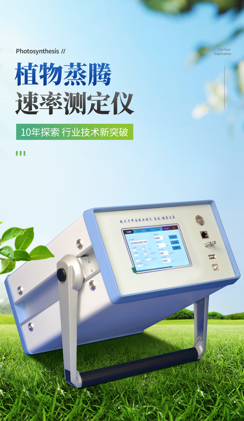 植物蒸騰速率是指水分通過植物體內(nèi)時(shí),經(jīng)過植物體表(主要是葉片)以氣體的方式散發(fā)到大氣中的速度。植物的蒸騰作用能產(chǎn)生蒸騰拉力,蒸騰拉力是植物被動(dòng)吸水與轉(zhuǎn)運(yùn)水分的主要?jiǎng)恿Γ@對高大的喬木尤為重要;蒸騰作用可以促進(jìn)木質(zhì)部汁液中物質(zhì)的運(yùn)輸,土壤中的礦質(zhì)鹽類和根系合成的物質(zhì)可隨著水分的吸收和集流而被運(yùn)輸和分布到植物體各部分去;蒸騰作用還可以降低植物體的溫度,防止葉片被灼傷。蒸騰作用的正常進(jìn)行有利于CO2的同化,這是因?yàn)槿~片進(jìn)行蒸騰作用時(shí),氣孔是開放的,開放的氣孔便成為CO2進(jìn)入葉片的通道。因此植物蒸騰速率的測量對于農(nóng)業(yè)科研、教學(xué)、園藝研究、林業(yè)研究等具有重大意義。