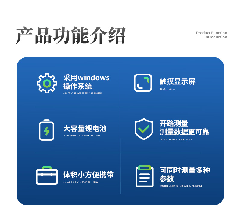 | 工作環(huán)境:溫度20℃—50℃,相對濕度:0-100%(沒有水汽凝結(jié)) | 電源:DC7.4V鋰電池,可連續(xù)工作7-9小時(shí) |