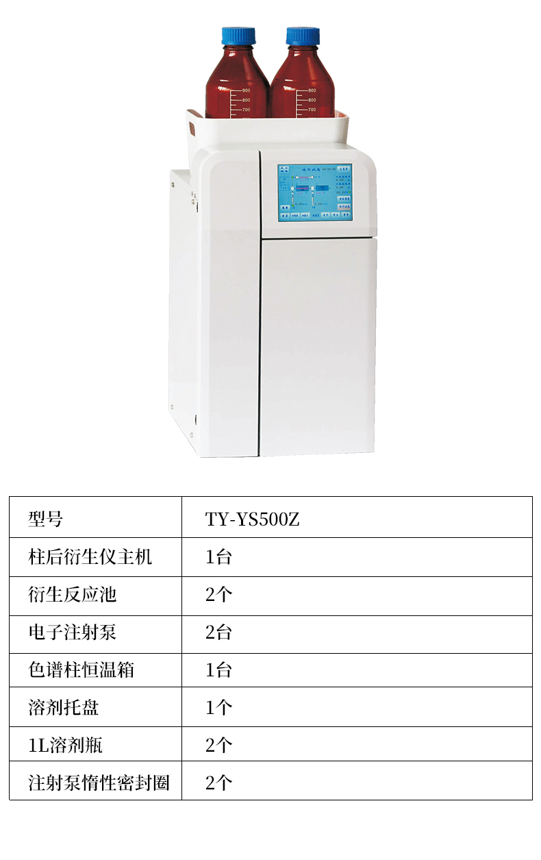 柱后衍生系統(tǒng)簡述: 柱后衍生系統(tǒng)廣泛應(yīng)用于食品、農(nóng)產(chǎn)品農(nóng)殘毒素及藥品、環(huán)境水質(zhì)監(jiān)測等領(lǐng)域,可滿足多種實(shí)驗(yàn)項(xiàng)目的分析應(yīng)用要求(符合GB/T 5750.9-2006、GB23200.12等多項(xiàng)標(biāo)準(zhǔn))。本產(chǎn)品配備智能型大屏幕操作面板,采用電子注射泵提供更平穩(wěn)的液體流動(dòng),大幅提升分析靈敏度和一致性;獨(dú)特的泵頭與電磁閥組