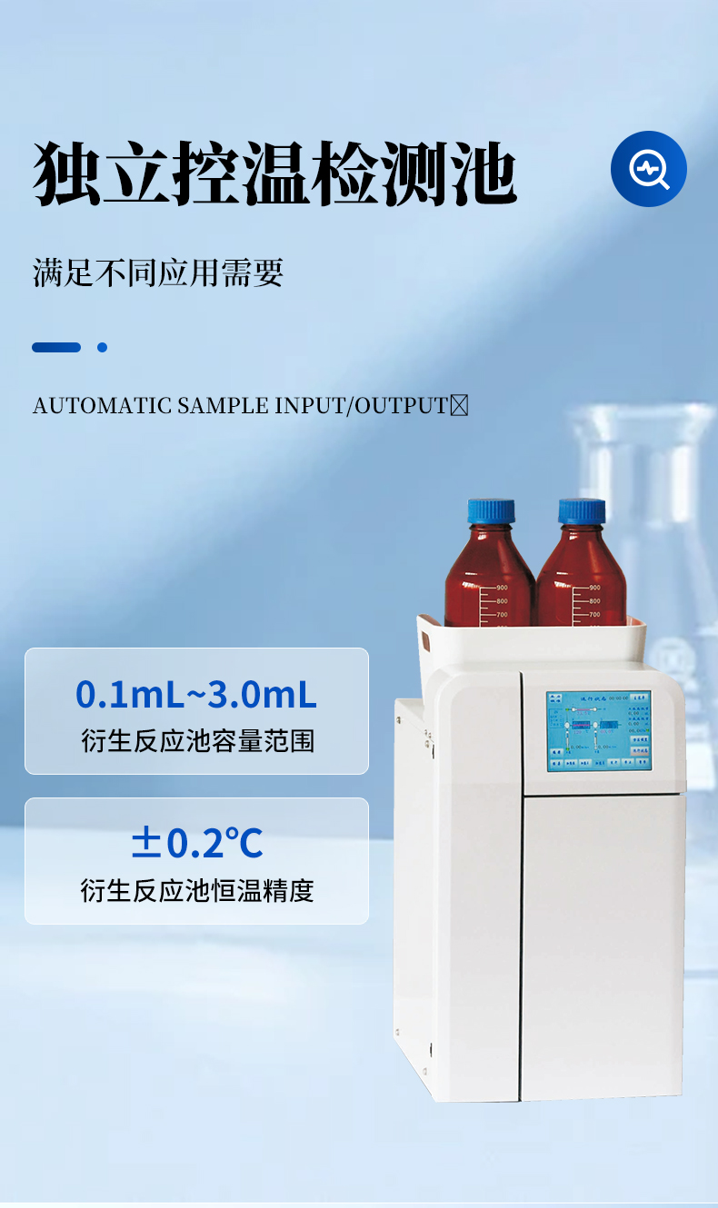 | 3.自帶色譜柱恒溫箱: 3.1 內(nèi)置色譜柱恒溫箱,保障柱后死體積最??; 3.2 可預(yù)裝色譜柱:ODS 8mm×50-250mm長(另購色譜柱和保護(hù)柱); 3.3 控溫范圍:室溫以上+5℃~100℃; 3.4 恒溫精度:±0.2℃; 4.控制軟件: 4.1 內(nèi)置圖形化控制軟件,預(yù)存10種標(biāo)準(zhǔn)檢測方法; 4.2 預(yù)留99種用戶自定義方法,可自行定義衍生方法; | 5.系統(tǒng): 5.1 全惰性流路,延長系統(tǒng)使用壽命、減少維護(hù),全反控軟件**控制試劑傳送與溫度; 5.2 系統(tǒng)具有漏液、超壓、超溫報(bào)警,確保運(yùn)行安全; 5.3 電子單向閥,防止HPLC壓力下降時(shí)試劑回流到色譜柱; 6.工作條件: 6.1 相對(duì)溫:5℃-35℃; 6.2 相對(duì)濕度:<90%; |