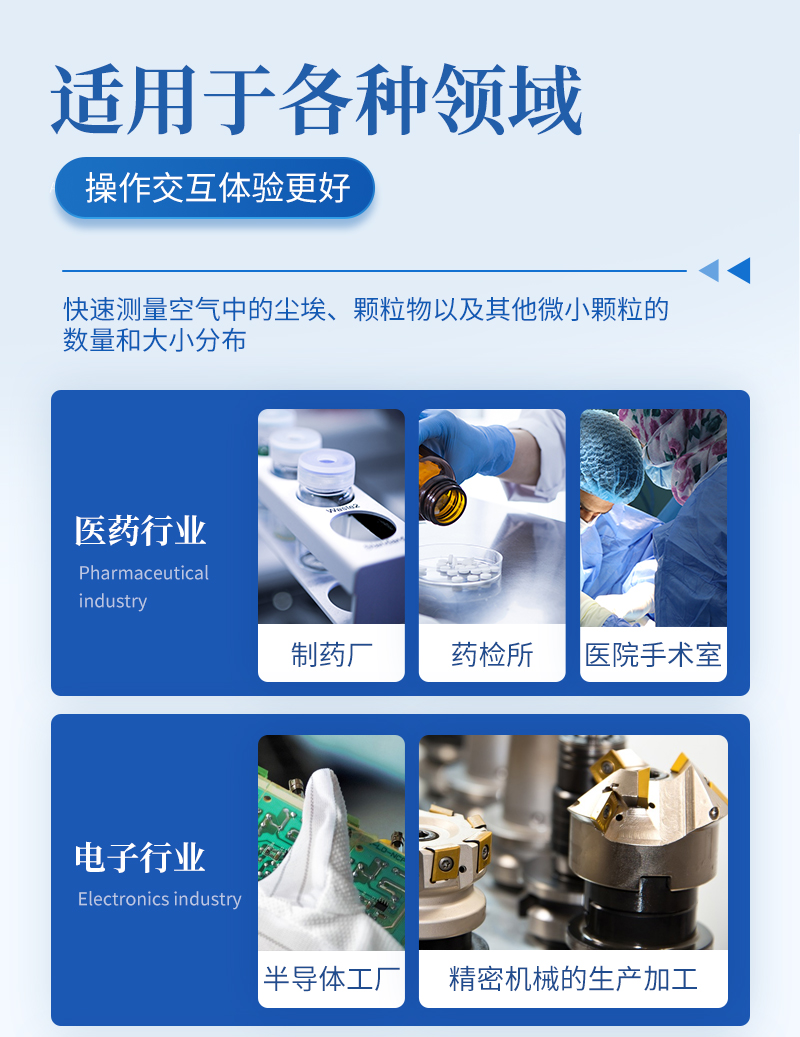 手持塵埃粒子計數(shù)器是一種便攜式的檢測設(shè)備,專門用于快速測量空氣中的塵埃、顆粒物以及其他微小顆粒的數(shù)量和大小分布。這類儀器廣泛應(yīng)用于多個行業(yè),包括但不限于制藥、半導(dǎo)體制造、醫(yī)院、無塵車間、空氣凈化器效果驗證等領(lǐng)域。